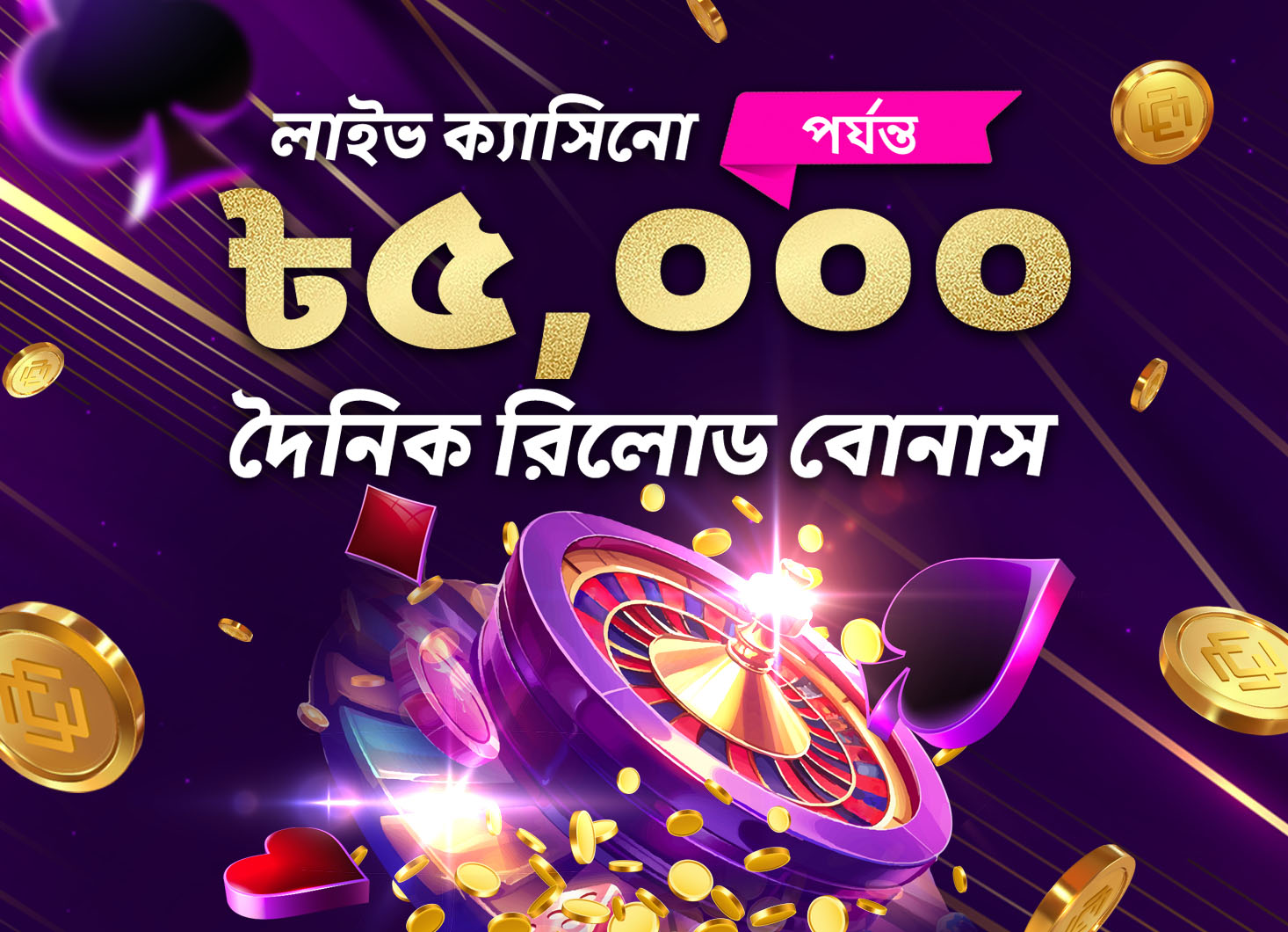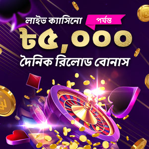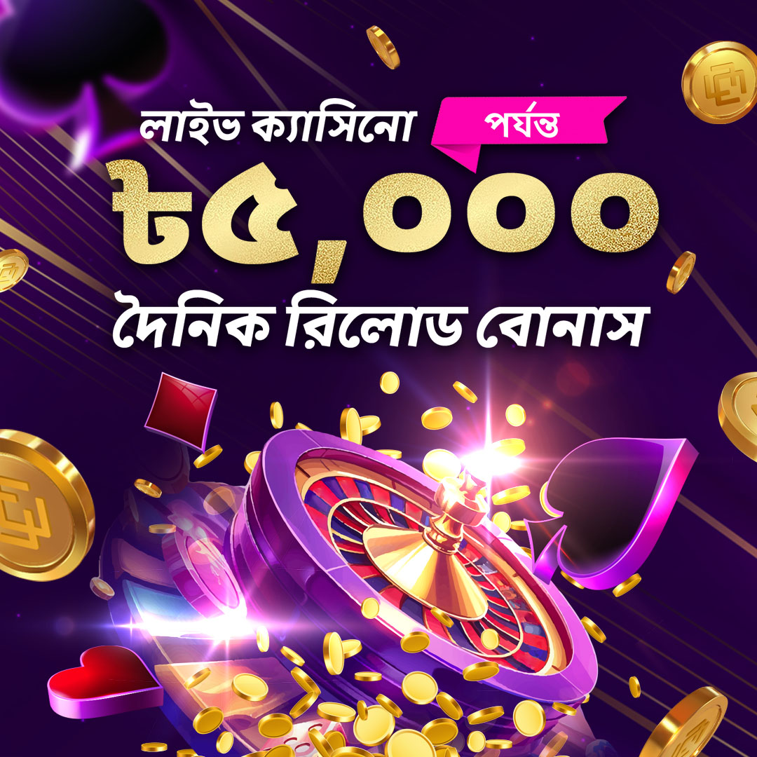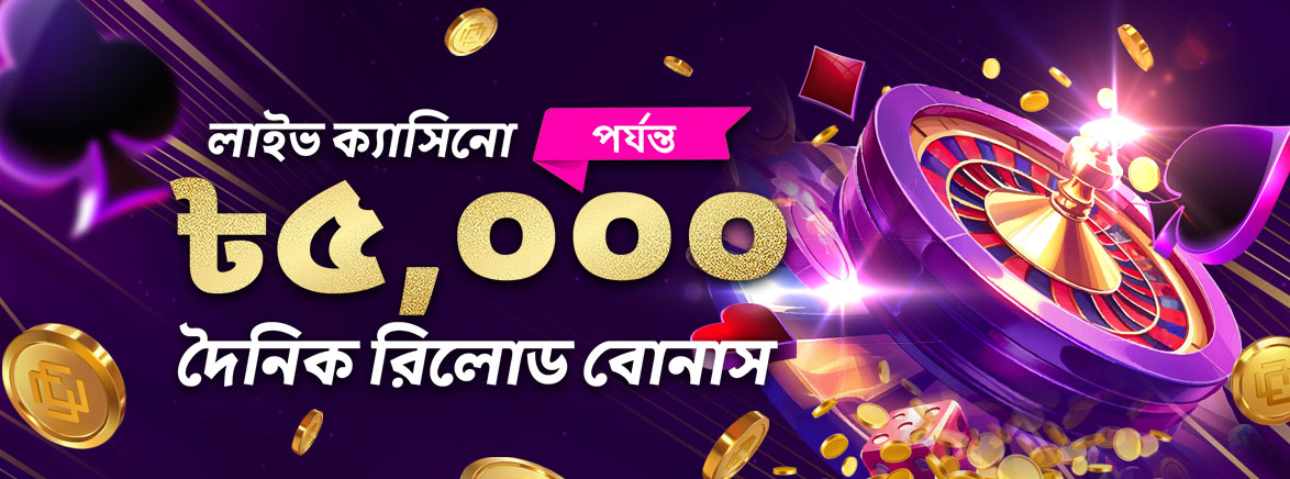 ক্যাসিনো ২০% দৈনিক রিলোড বোনাস ৫,০০০ টাকা।