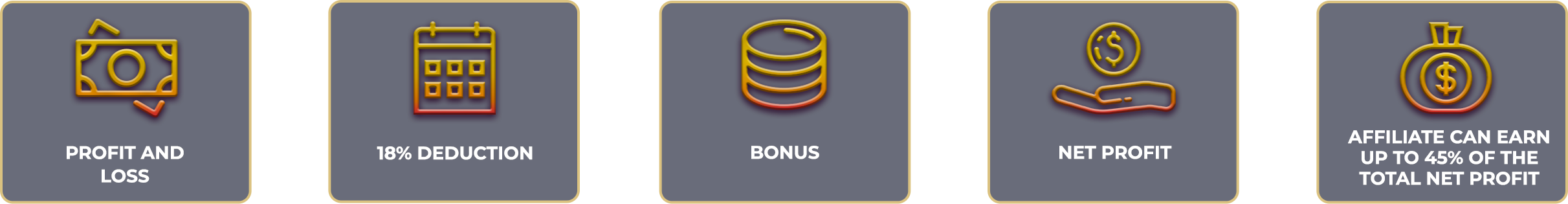 | AFFILIATE ACCOUNT | WEEKLY AFFILIATE NETLOSS | WEEKLY ACTIVE PLAYERS | DEDUCTION | BONUS | COMMISSION% | COMMISSION AMOUNT |